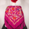 Mantón Alegría en color buganvilla, de algodón con bordado multicolor en hilo mate de seda.