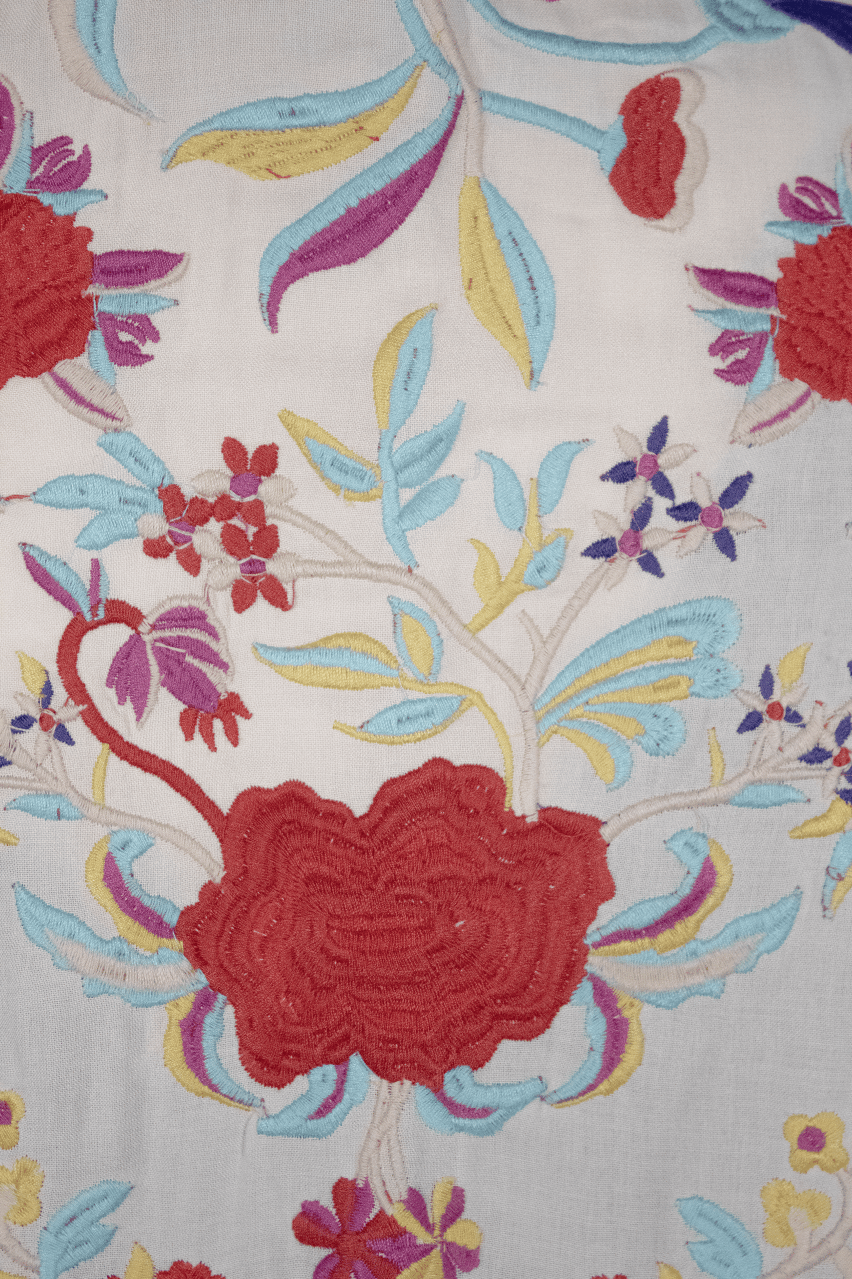 Mantón Alegría en color crema, de algodón con bordado multicolor en hilo mate de seda.