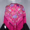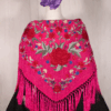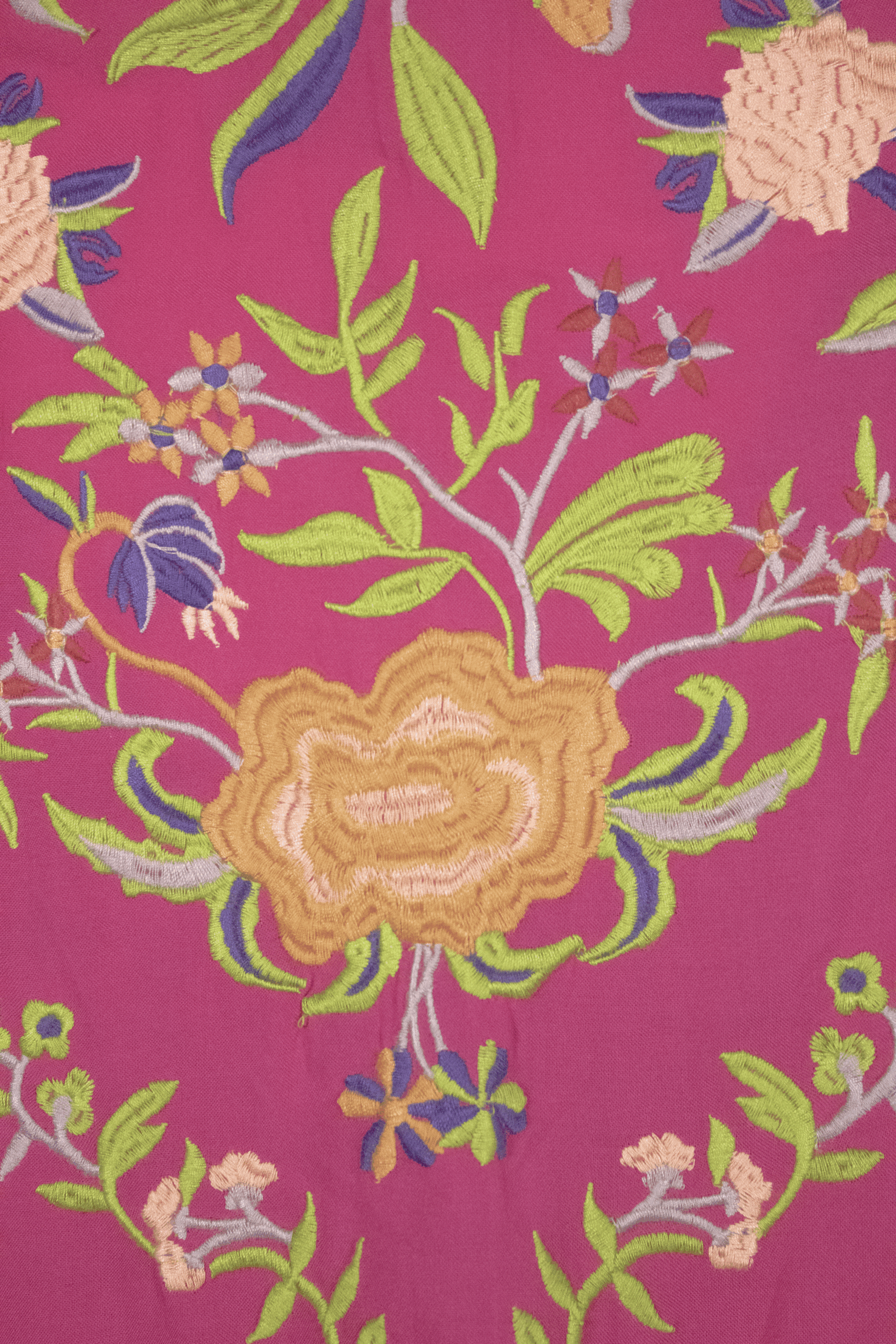 Mantón Alegría en color fucsia, de algodón con bordado multicolor en hilo mate de seda.
