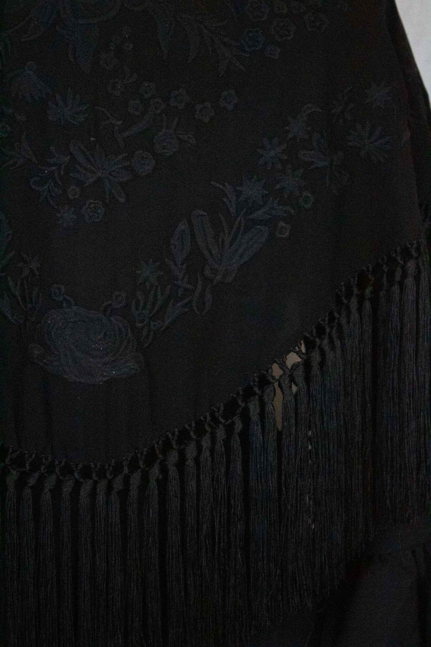 Mantón Alegría en color negro, de algodón con bordado en su tono en hilo mate de seda.