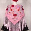 Mantón Alegría en color rojo, de algodón con bordado multicolor en hilo mate de seda.