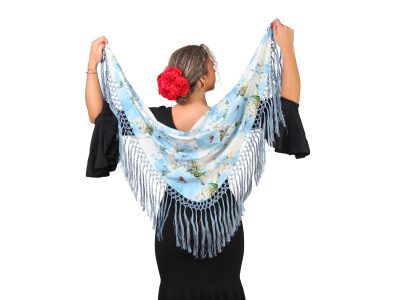 Broche de flamenca flor mediana piedras nácar color azul ducado, coral y beige