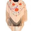 Mantón color camel bordado en burdeos y fleco en burdeos