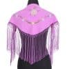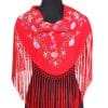 Mantón de niña aguamarina bordado en aguamarina, enrejado y flecado a mano con seda natural. Medidas 103x34cm aprox. (Sólo el mantón) más los flecos 20 cm (incluyendo el enrejado). Fabricado artesanalmente en la provincia de Sevilla.