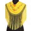 Mantón de niña blanco bordado en el mismo color, enrejado y flecado a mano con seda natural. Medidas 103x34cm aprox. (Sólo el mantón) más los flecos 20 cm (incluyendo el enrejado). Fabricado artesanalmente en la provincia de Sevilla.