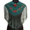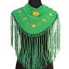 Mantón de niña verde Andalucía bordado beige , enrejado y flecado a mano con seda natural. Medidas 103x34cm aprox. (Sólo el mantón) más los flecos 20 cm (incluyendo el enrejado). Fabricado artesanalmente en la provincia de Sevilla.
