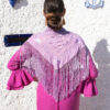 Está acabado en borlón y flecado en hilo de seda 100% natural. Flecado a mano en la provincia de Sevilla.