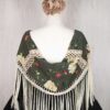 Mantón niña rojo con lunares negros, acabado en flecos y bordado negros.