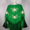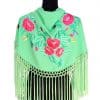 Mantón verde Andalucía bordado en tonos rojos y beige