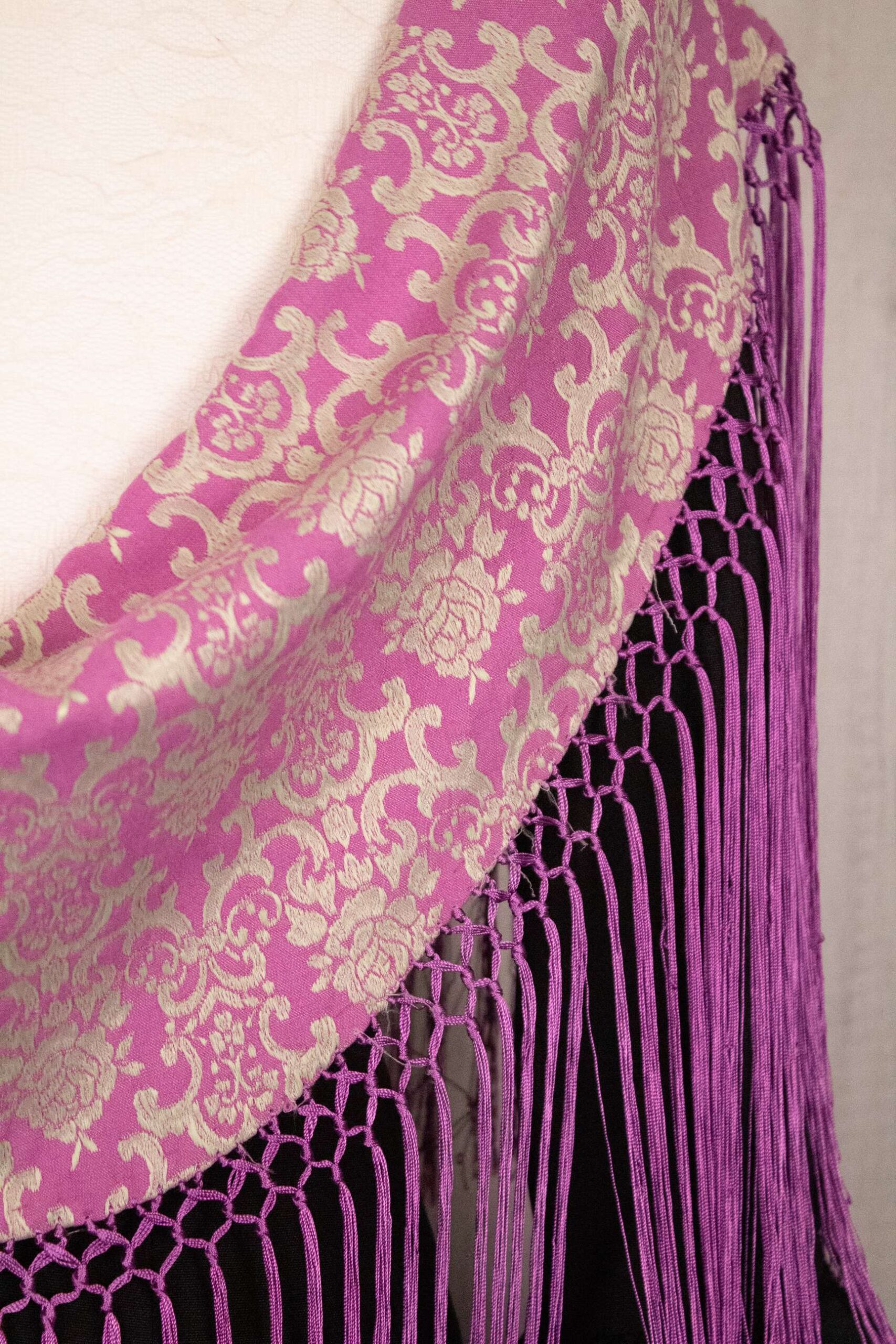 Mantón violeta bordado en marfil