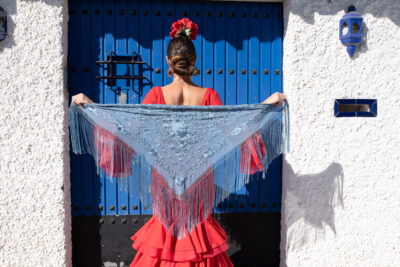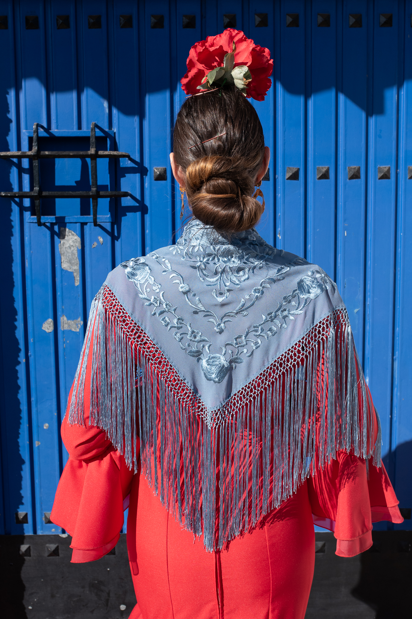 Mantoncillo Candela de seda azul ducado bordado al tono