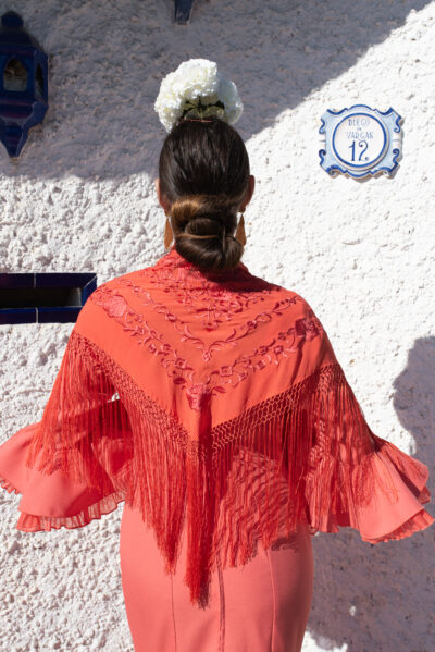 Mantoncillo Candela de seda salmón bordado al tono
