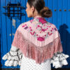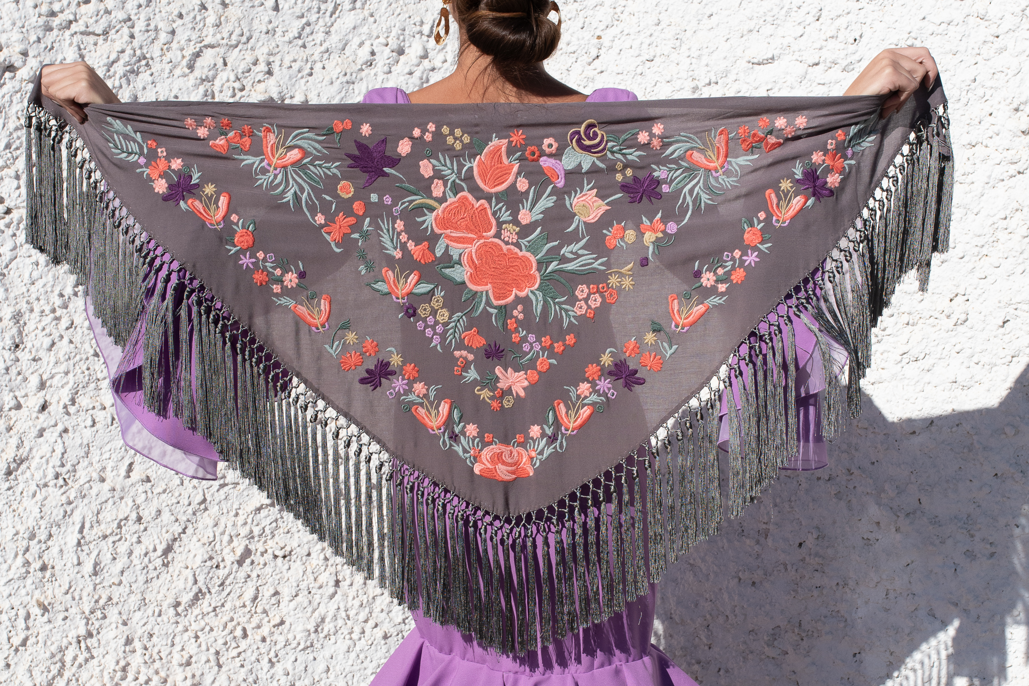 Mantón Gabriela en color gris oscuro de algodón con bordado coral en hilo mate de seda