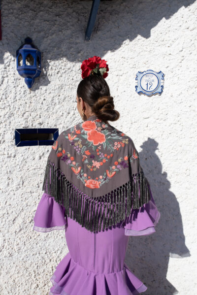 Está acabado en borlón y flecado en hilo de seda 100% natural. Flecado a mano en la provincia de Sevilla.