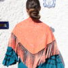 Está acabado en borlón y flecado en hilo de seda 100% natural. Flecado a mano en la provincia de Sevilla.