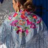 Mantón Gabriela en color gris oscuro de algodón con bordado coral en hilo mate de seda