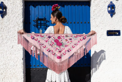 Está acabado en borlón y flecado en hilo de seda 100% natural. Flecado a mano en la provincia de Sevilla.