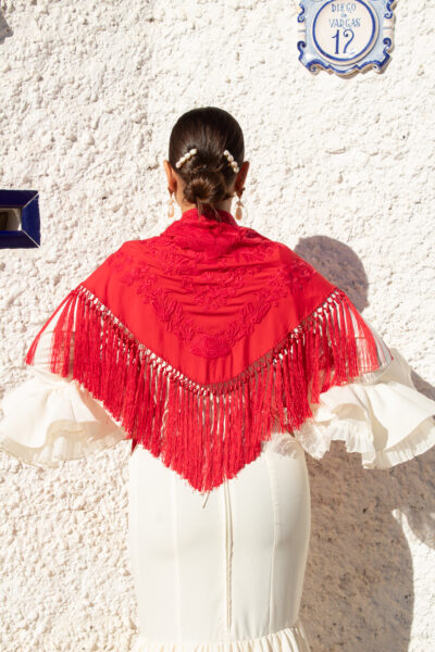 Está acabado en borlón y flecado en hilo de seda 100% natural. Flecado a mano en la provincia de Sevilla.