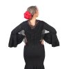 Mantoncillo de plumeti blanco con lunares blancos. Medidas: 120x35cm aprox. (Sólo el mantón) más los flecos 25 cm (incluyendo el enrejado). Fabricado artesanalmente en la provincia de Sevilla.