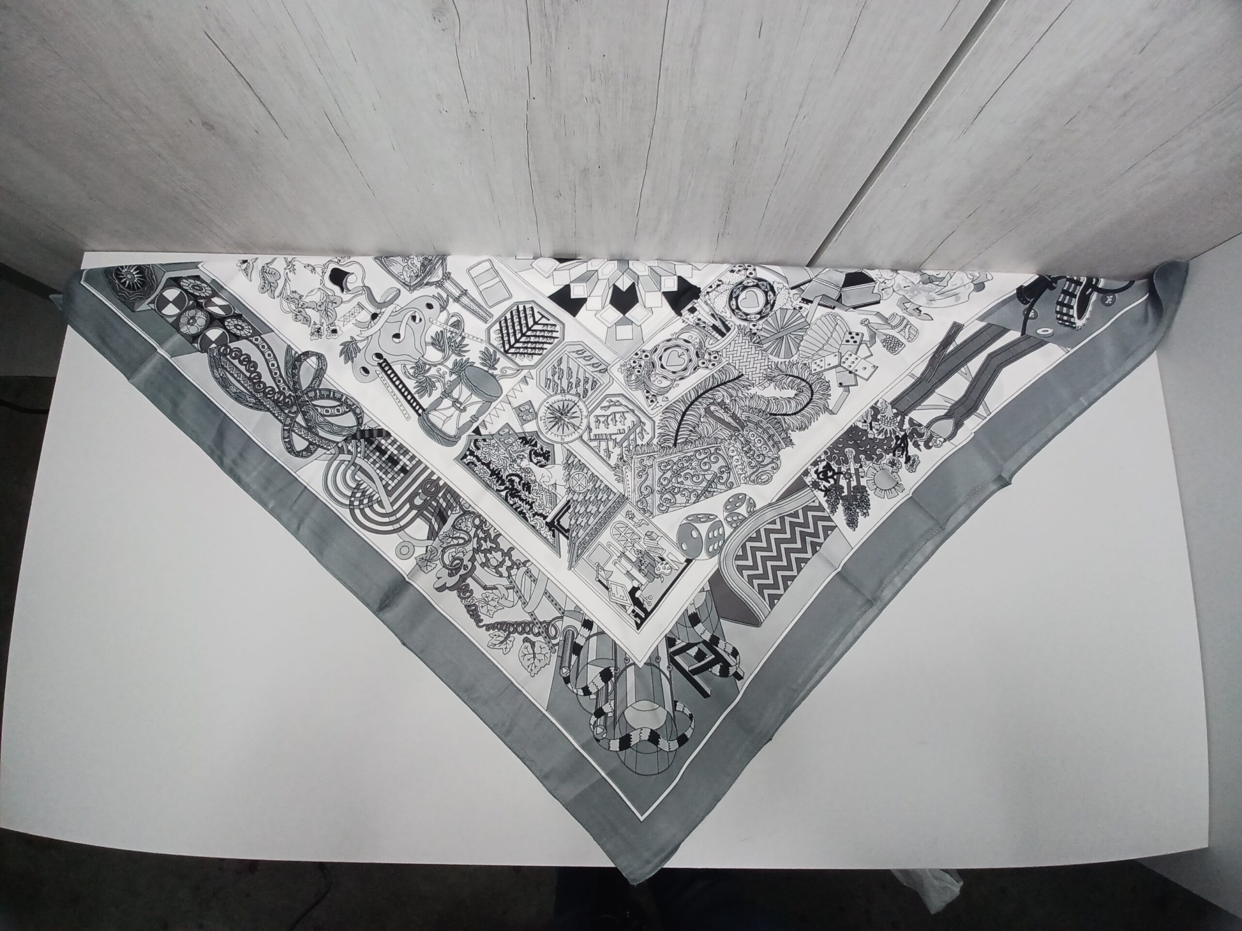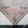 Pañuelo rociero grande de color plata estampado con dibujos, hecho de 100% polyester.