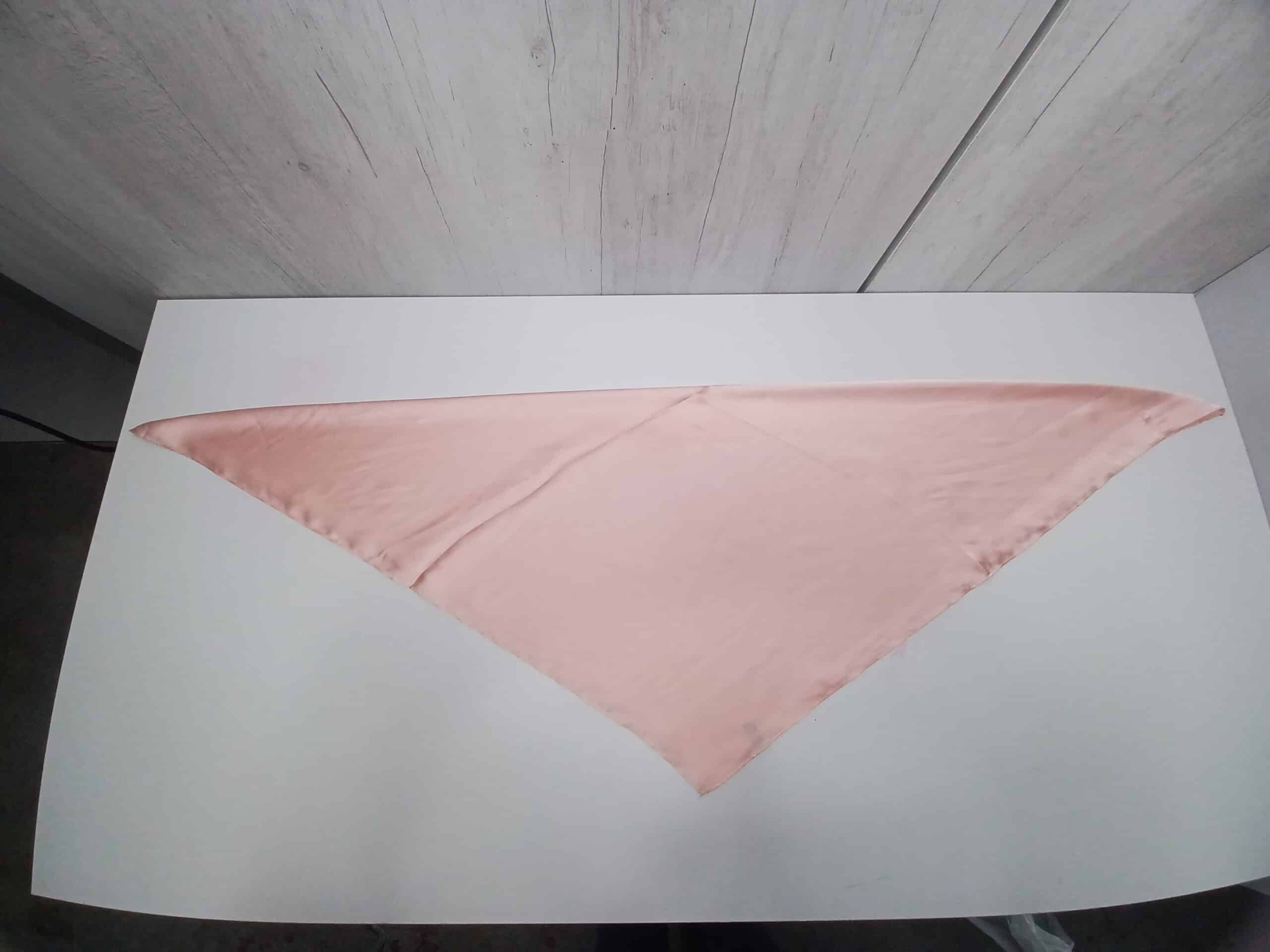 Pañuelo rociero liso de color rosa, hecho de 80% tela viscosa y 20% seda.
