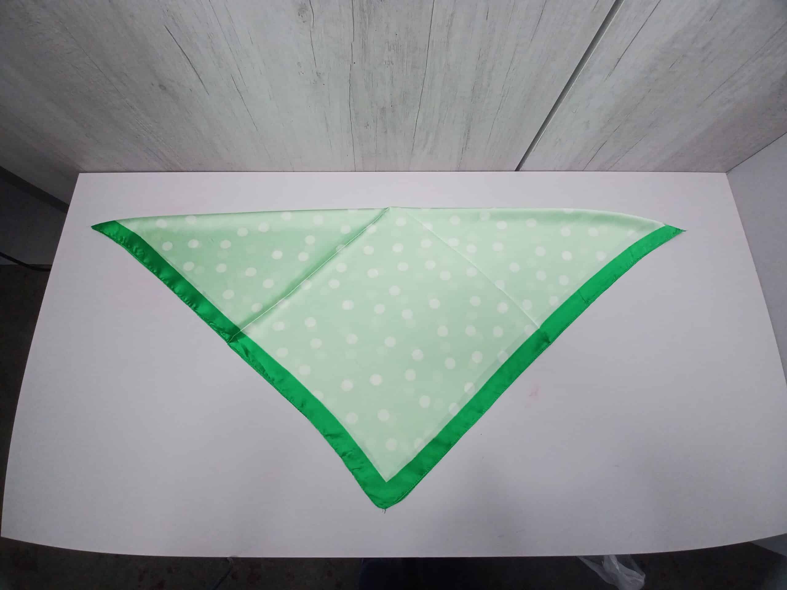 Pañuelo rociero liso de color verde estampado con lunares blancos, hecho de 80% tela viscosa y 20% seda.