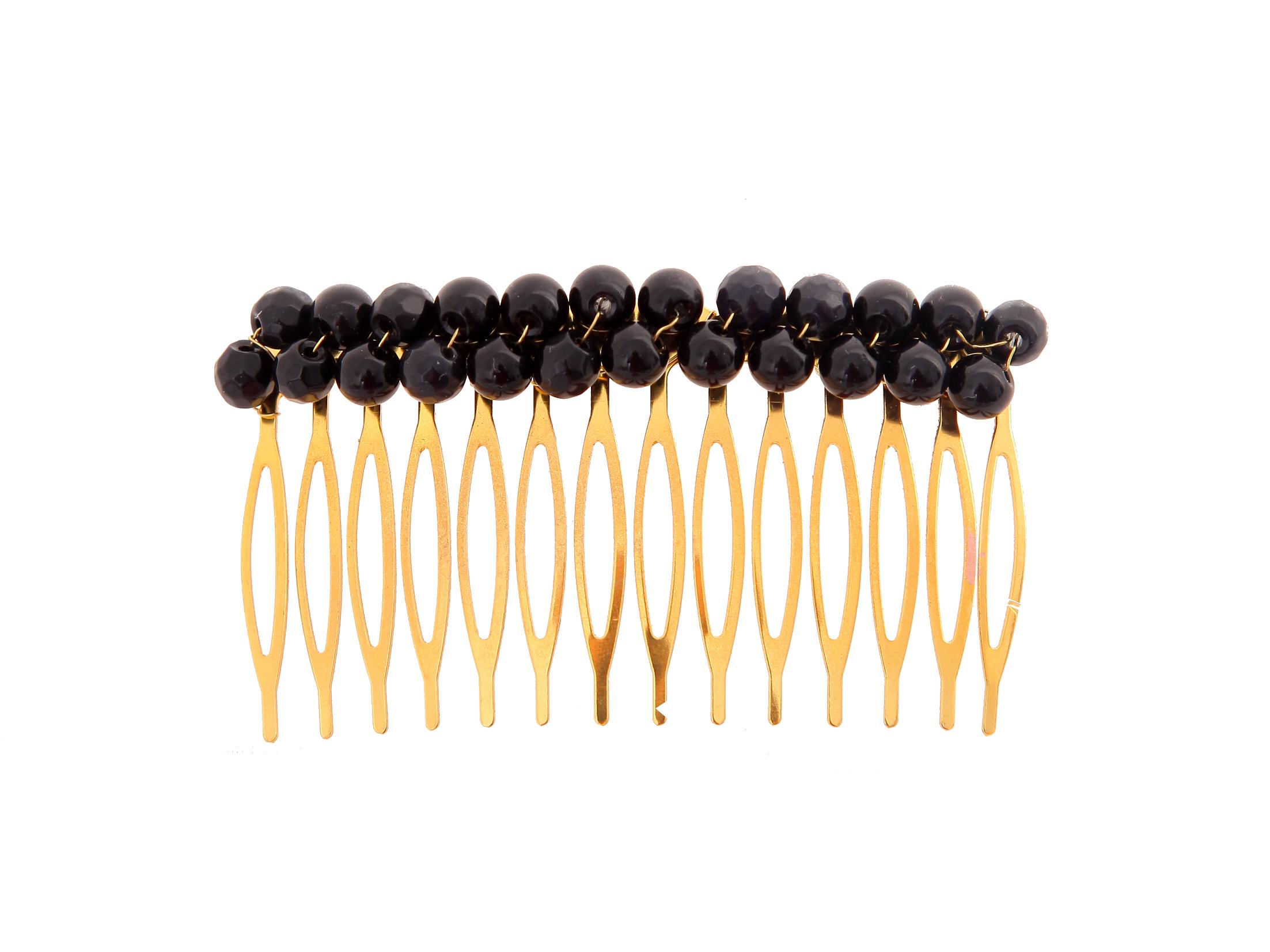 Peinecillo con bolas de piedra Ágata negro. Medidas aproximadas ancho x largo, 80x45mm. Fabricado artesanalmente en la provincia de Sevilla.