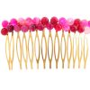Peinecillo con bolas de piedra Ágata rosa fucsia. Medidas aproximadas ancho x largo, 80x45mm. Fabricado artesanalmente en la provincia de Sevilla.