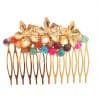 Peinecillo con bolas de piedra Ágata y corales en oro mate