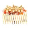 Peinecillo con bolas de piedra Ágata y corales en oro mate