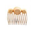 Peinecillo de flamenca con tres girasoles y acabado en dorado mate. Medidas ancho x largo, 95 x 50 mm (incluye púas). Fabricado artesanalmente en la provincia de Sevilla.