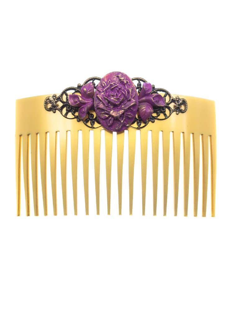Peinecillo de flamenca de resina morada con reflejos dorados