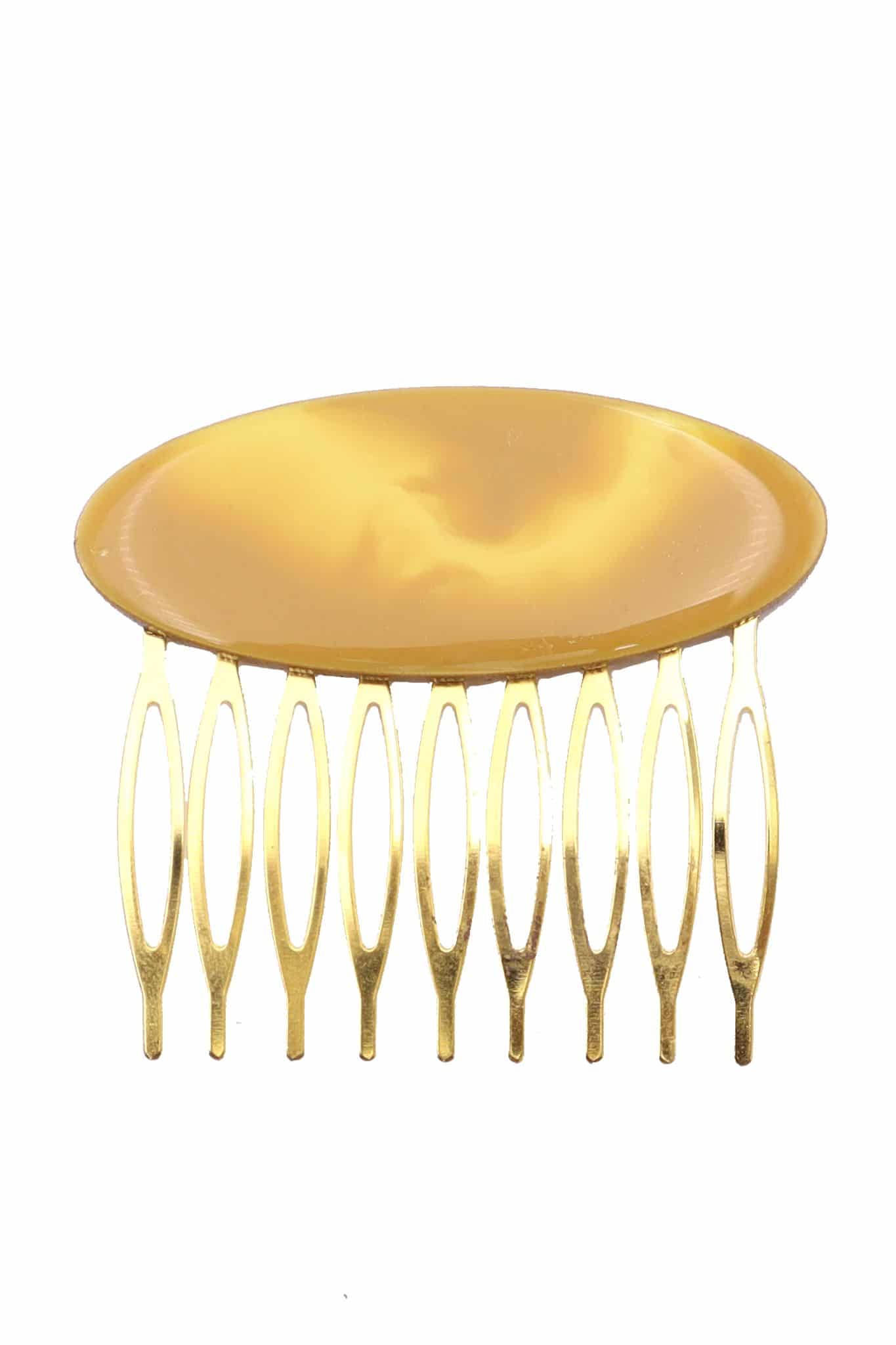 Peinecillo de flamenca mediano esmaltado acuarela color mostaza degradado. Medida 55×22 mm (sin peine). Fabricado artesanalmente en la provincia de Sevilla.