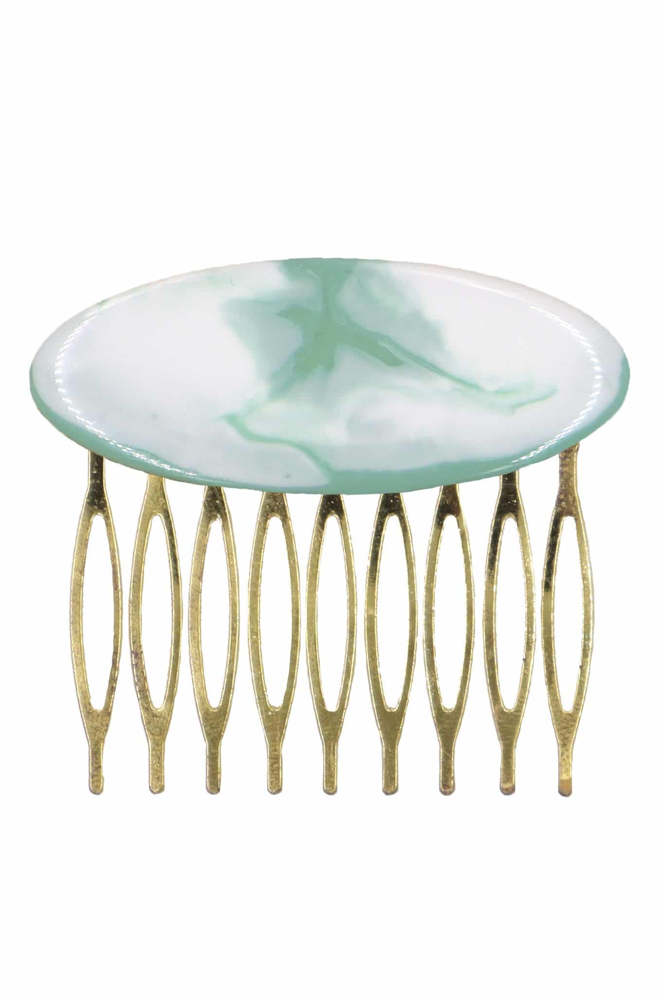 Peinecillo de flamenca mediano esmaltado acuarela color verde agua degradado. Medida 55×22 mm (sin peine). Fabricado artesanalmente en la provincia de Sevilla.