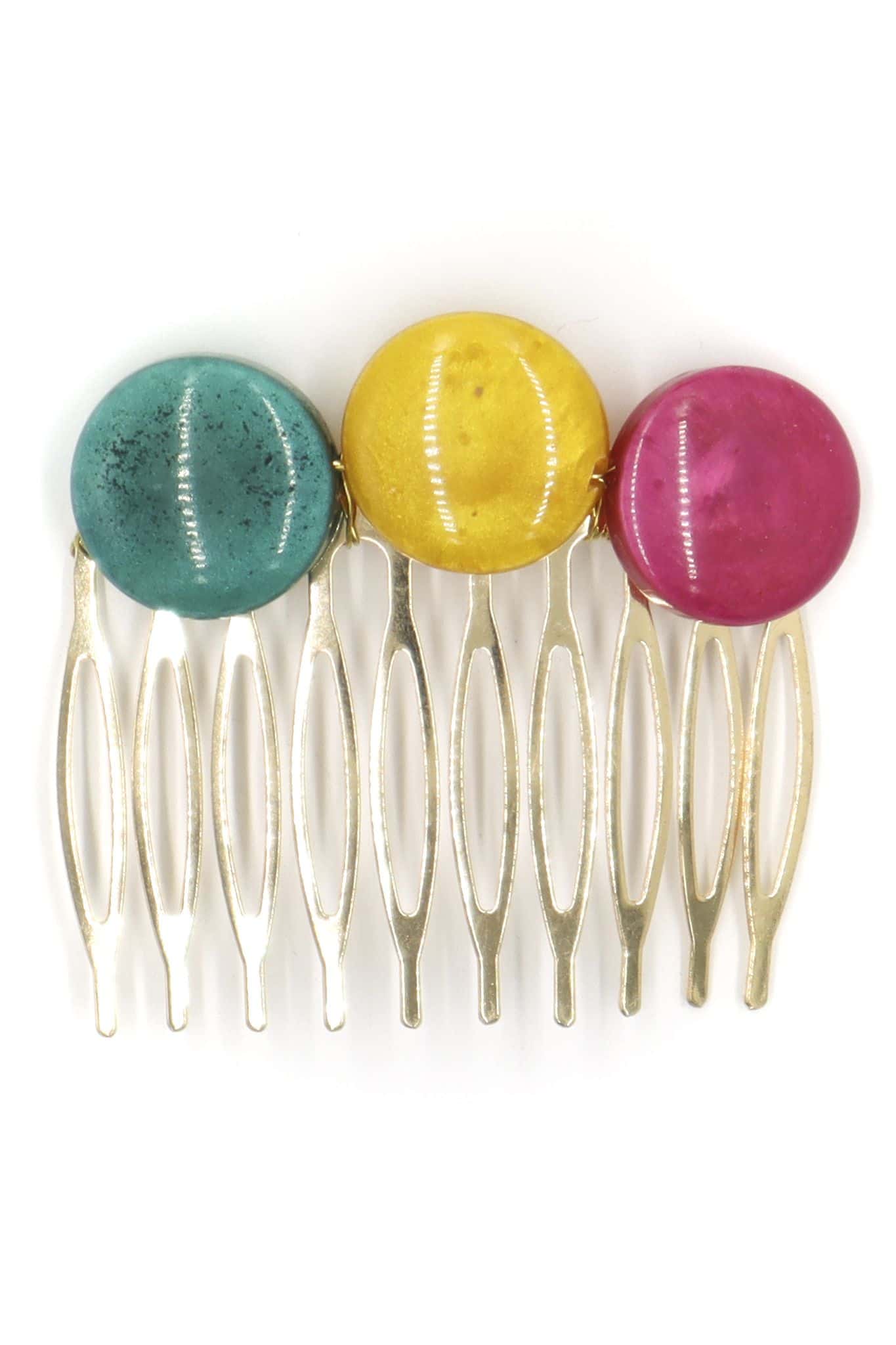 Peinecillo de flamenca mediano piedras nácar color aguamarina, mostaza y buganvilla