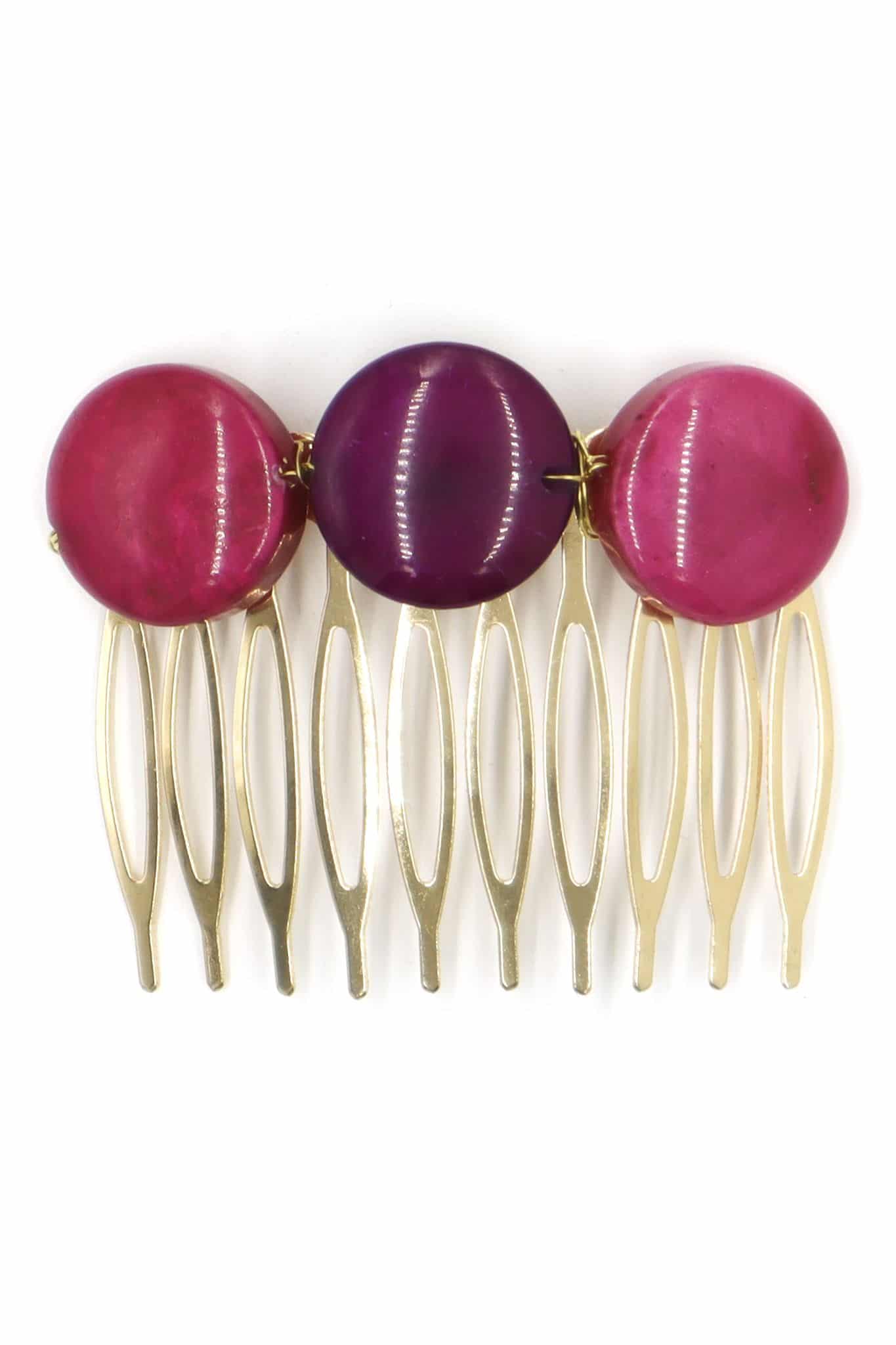 Peinecillo de flamenca mediano piedras nácar color buganvilla y morado. Medida 55×18 mm (sin peinecillo). Fabricado artesanalmente en la provincia de Sevilla.