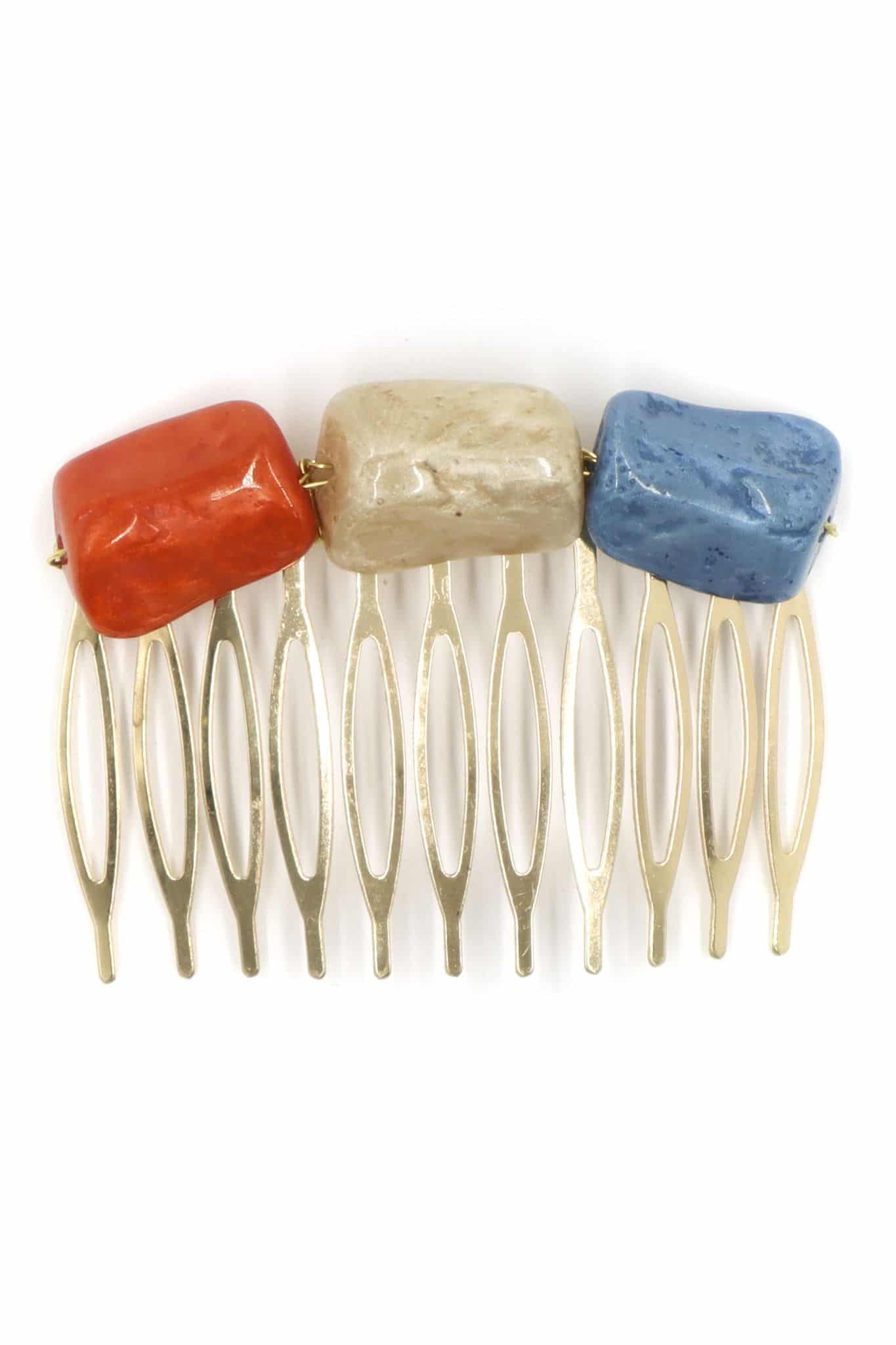 Peinecillo de flamenca mediano piedras nácar color coral, beige y azul ducado
