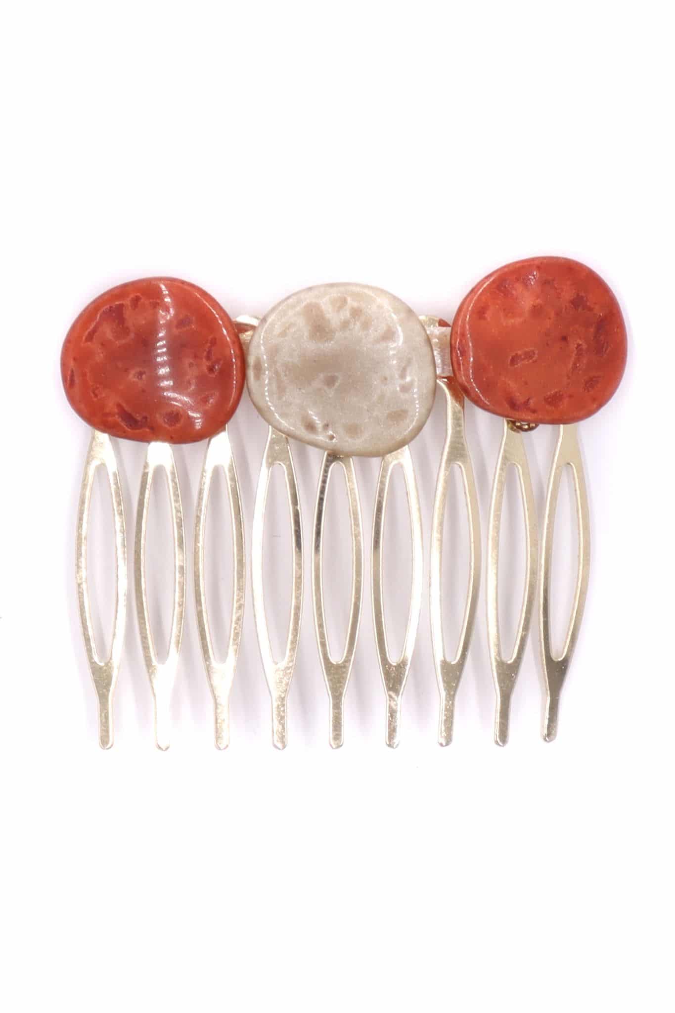 Peinecillo de flamenca mediano piedras nácar color coral y beige