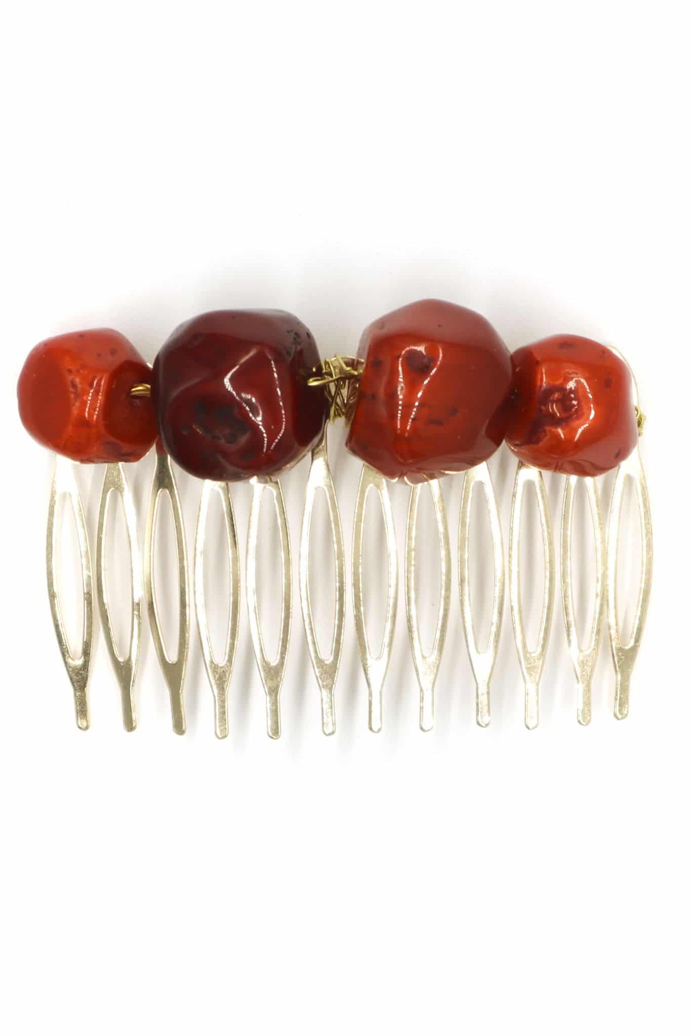Peinecillo de flamenca mediano piedras nácar color rojo