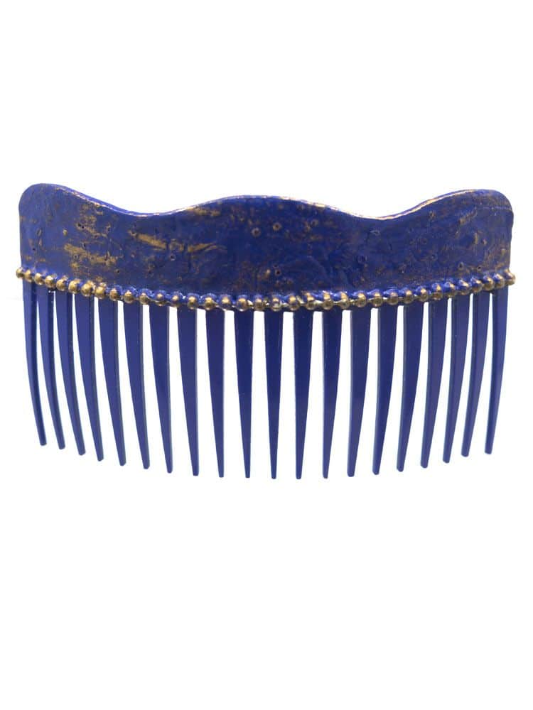Peinecillo de flamenca onda con craquelado azulina y reflejos dorados
