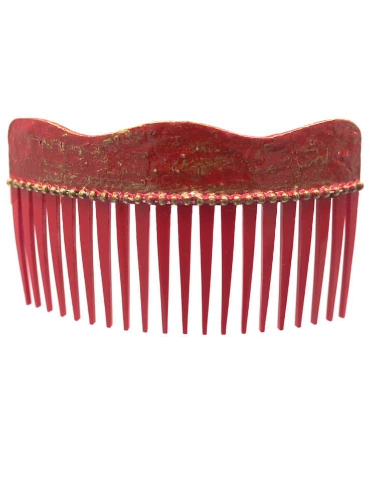 Peinecillo de flamenca onda con craquelado rojo y reflejos dorados
