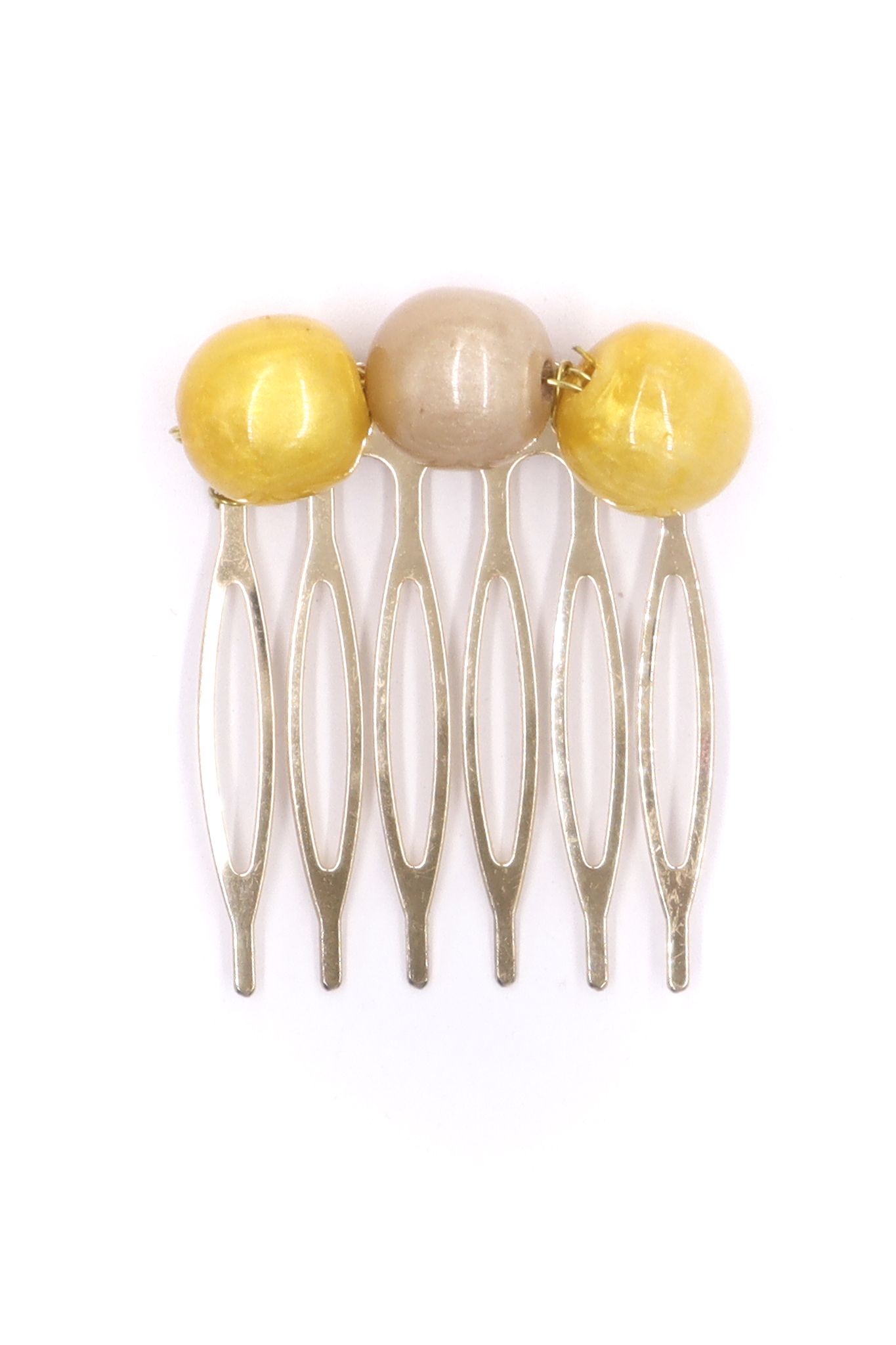 Peinecillo de flamenca pequeño piedras nácar color mostaza y beige. Medida 35×10 mm (sin peinecillo). Fabricado artesanalmente en la provincia de Sevilla.