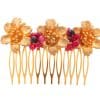 Peinecillo de flores en oro mate con bolas de piedra Ágata en rosa bebé. Medidas aproximadas ancho x largo, 8 x 5 cm. Fabricado artesanalmente en la provincia de Sevilla.