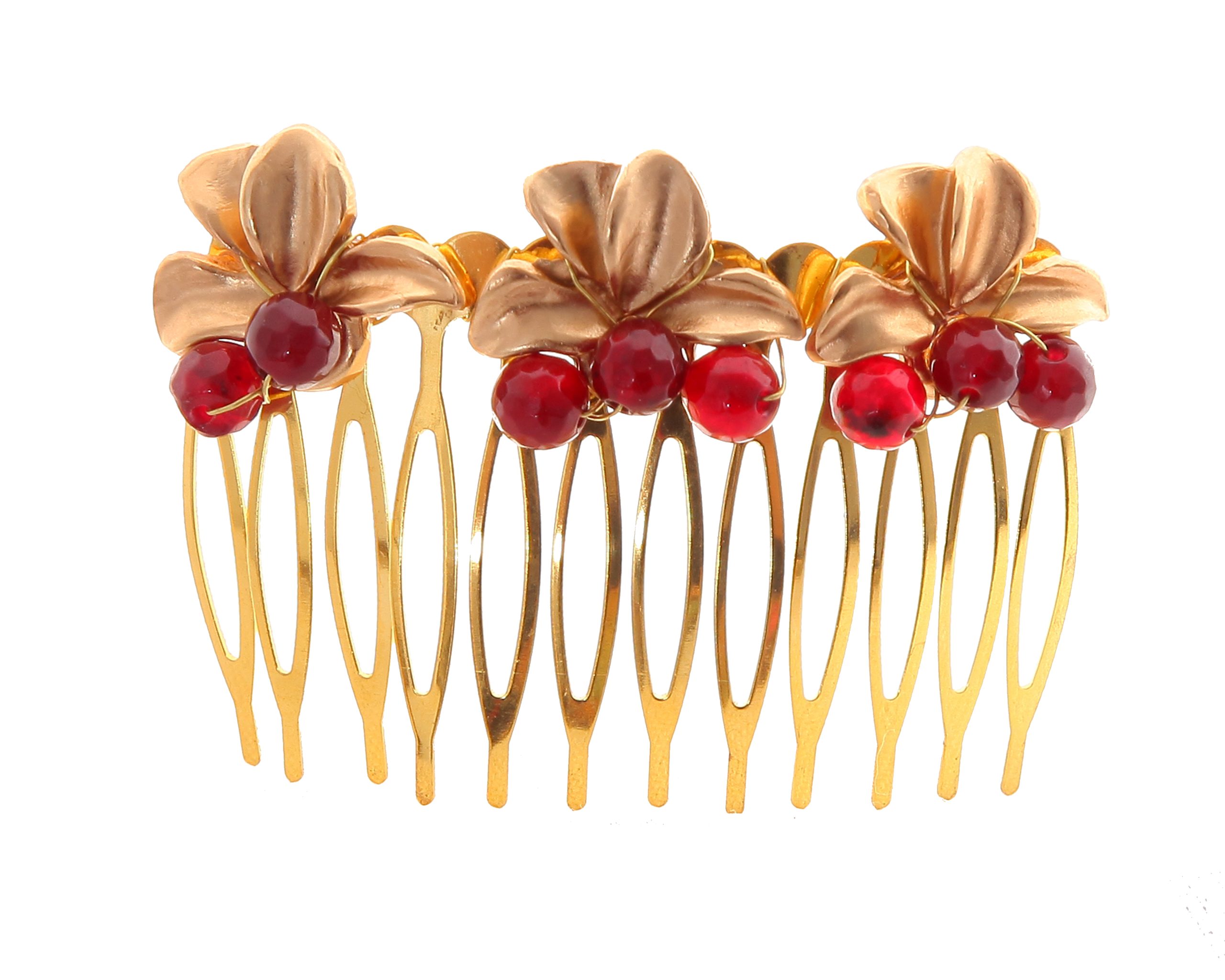 Peinecillo con fornitura de hoja y bolas de piedra Ágata en burdeos. Medidas aproximadas ancho x largo, 75x50mm.
