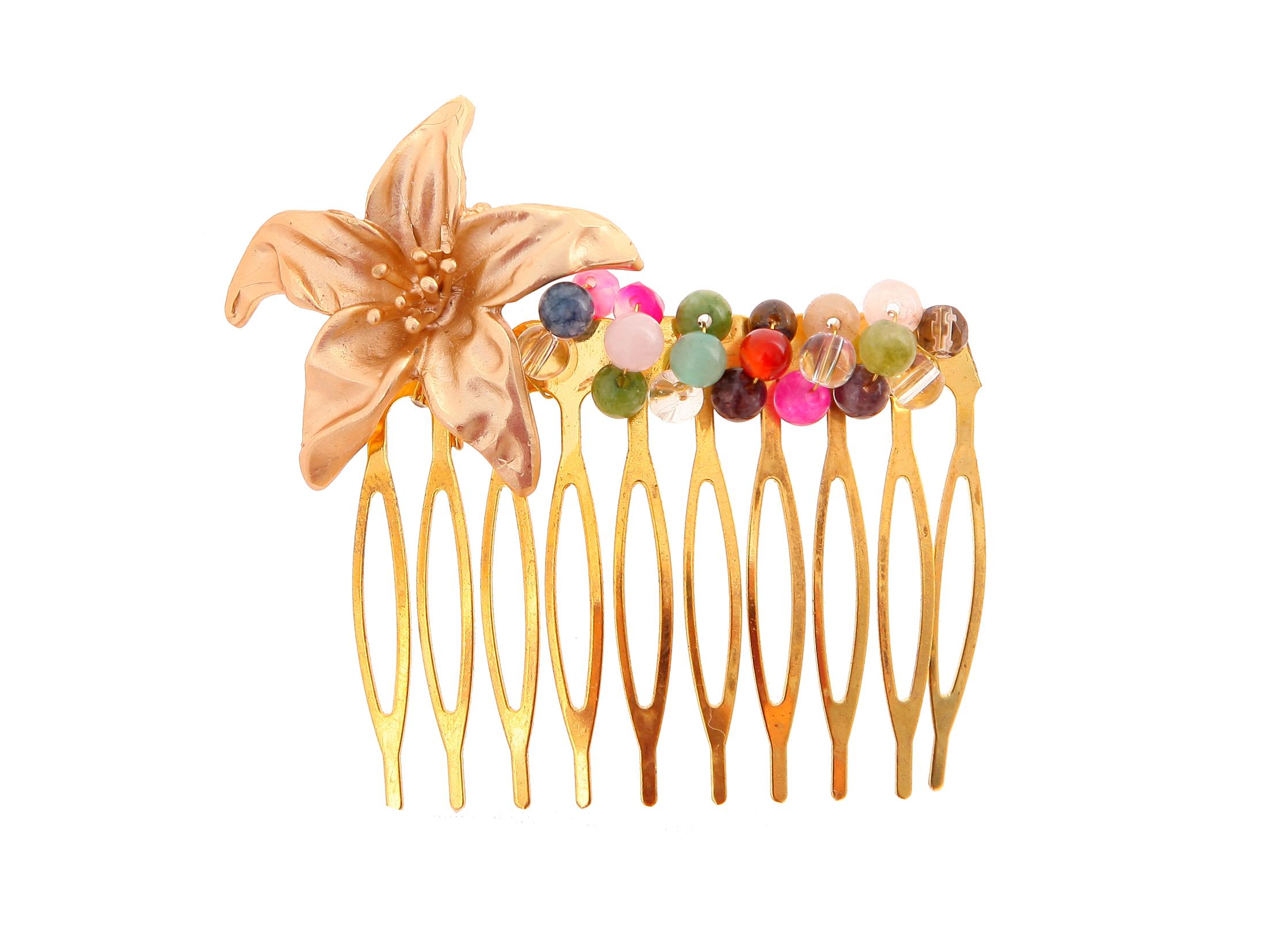 Peinecillo dorado de flor con piedra Ágata en multipastel