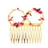 Peinecillo dorado en mate de hojas pintado en naranja y amarillo. Medidas aproximadas ancho x largo; 7 x 6,5 cm. (incluyendo las púas). Fabricado artesanalmente en la provincia de Sevilla.