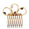 Peinecillo dorado mate pintado a mano en amarillo, rosa y aguamarina. Medidas aproximadas ancho x largo; 6,5 x 6,5 cm. (incluyendo las púas). Fabricado artesanalmente en la provincia de Sevilla.