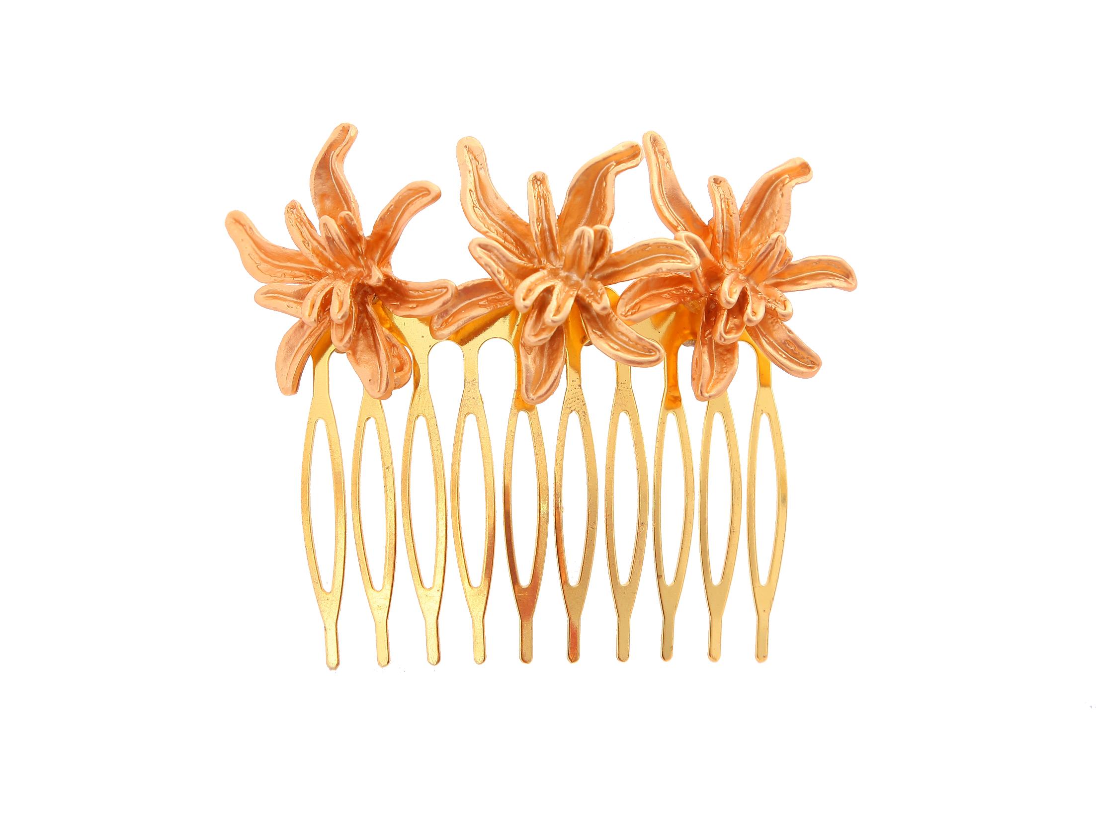 Peinecillo de flamenca dorado con acabado en mate. Medidas ancho x largo, 70 x 50 mm (incluye horquilla). Fabricado artesanalmente en la provincia de Sevilla.
