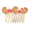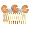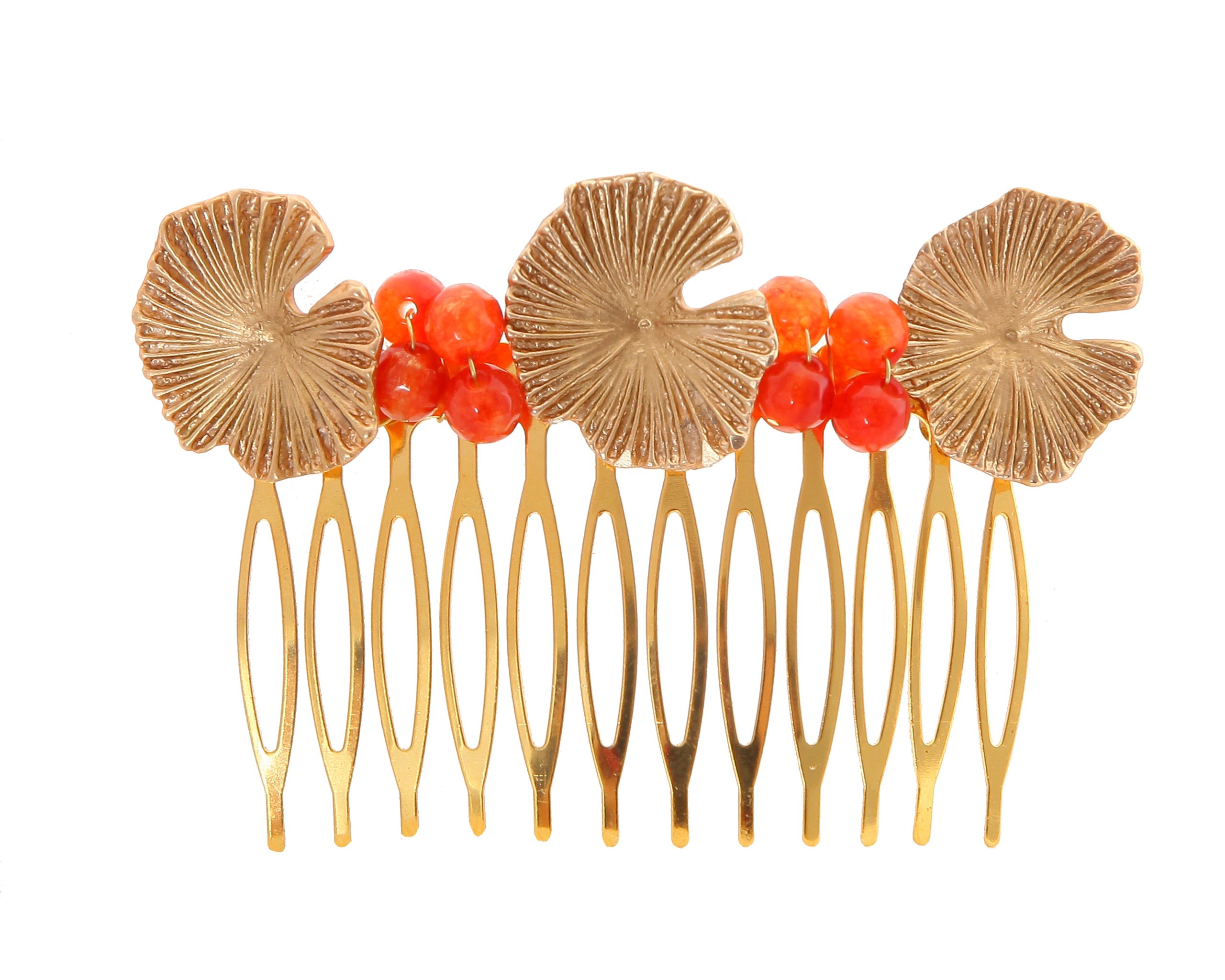 Peinecillo con fornitura de nenúfar y bolas de piedra Ágata en tonos naranjas. Medidas aproximadas ancho x largo, 80x50mm. Fabricado artesanalmente en la provincia de Sevilla.