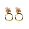 Pendiente dorado de dos círculos labrados, esfera final turquesa y aplique estilo acuarela